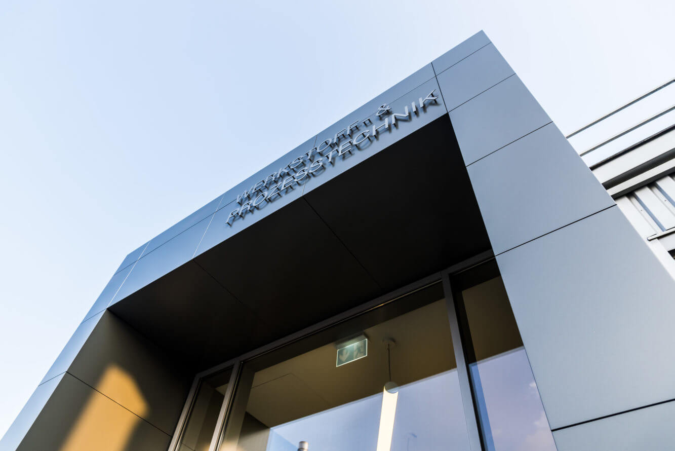 At the Graz site, an existing entrance to a production hall was extensively renovated. In addition to structural and technical requirements, great importance was attached to a contemporary and appropriate architecture matching the use of the building. On the outside and inside they used aluminum wall claddings. Exposed concrete and glass elements highlight the new architecture.