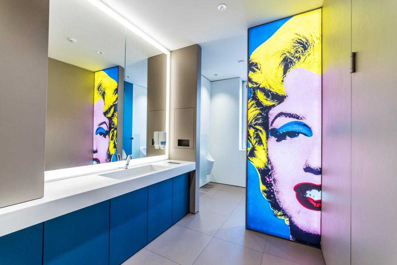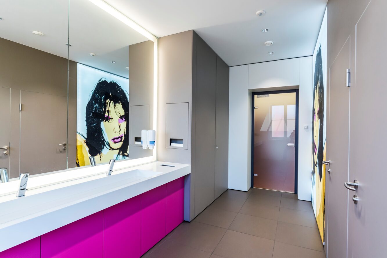 Sustainable wall claddings were installed, which on the one hand convince in terms of hygiene and comfortable use and on the other hand harmonize with the chosen decorative photo motifs.